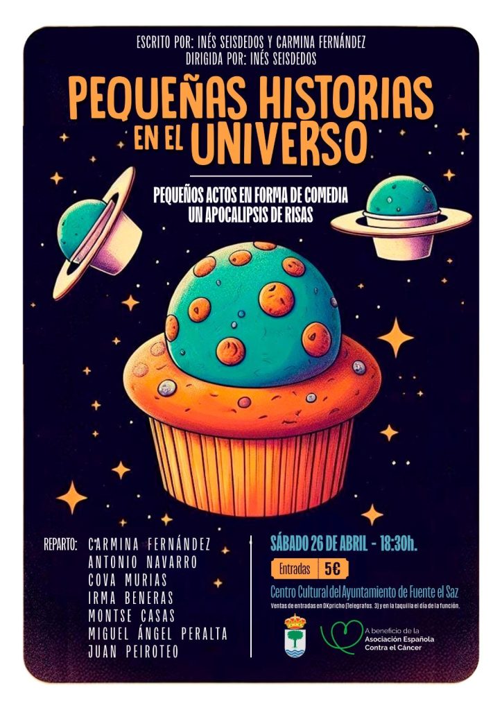 La pieza teatral a la que nos referimos es Pequeñas Historias en el Universo, una comedia representada el pasado 26 de abril en el centro cultural de Fuente el Saz de Jarama, auspiciada por ese ayuntamiento y por la Asociación contra el cáncer. Los fondos recaudados se destinaron íntegramente a la Asociación contra el Cáncer Infantil. Por cierto, la coautora y directora de esta obra, Inés Seisdedos del Olmo es trabajadora de Iberdrola y también afiliada de SIE. Así que hay mucha energía detrás de esta iniciativa.
